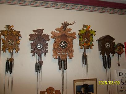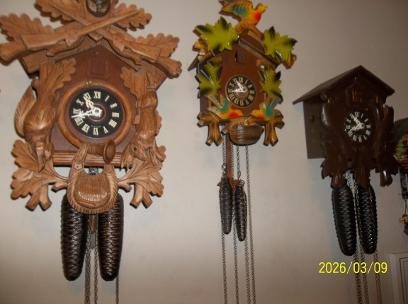 At Present we have in stock Three Eight Day Cuckoo Clocks.This being one of the rare pieces Priced at 800.00 You can Buy one out of China new for $7000.00 will not last.All Our Cuckoo Clocks are From The Black Forest Cuckoo Company Germany.